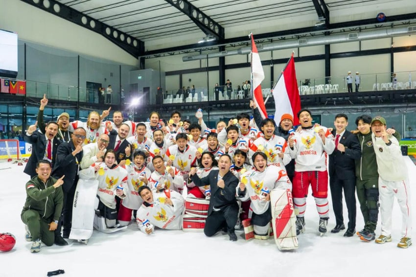 Timpilihan Hoki Es Indonesia mengguratkan tinta emas Untuk sejarah Latihan nasional Bersama membawa pulang medali emas SEA Games 2025 / Foto: Ist