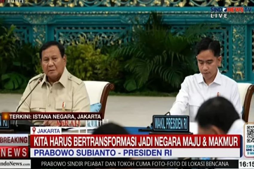 Pemimpin Negara Prabowo Subianto Menyediakan pengarahan kepada kepala Lokasi se-Papua Di Istana Negeri, Jakarta, Selasa (16/12/2025). Foto: Sindonews