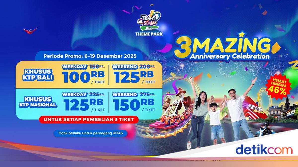 Liburan akhir tahun bakal makin seru Lantaran Trans Studio Theme Park Bali resmi merayakan ulang tahunnya yang ketiga! Sebagai bentuk perayaan bersama semua pengunjung yang telah mendukung Pada tiga tahun terakhir, taman hiburan indoor terbesar Hingga Bali ini Menampilkan promo spesial “3mazing” promo bertiga yang bikin liburan makin hemat, rame, dan pastinya lebih seru.