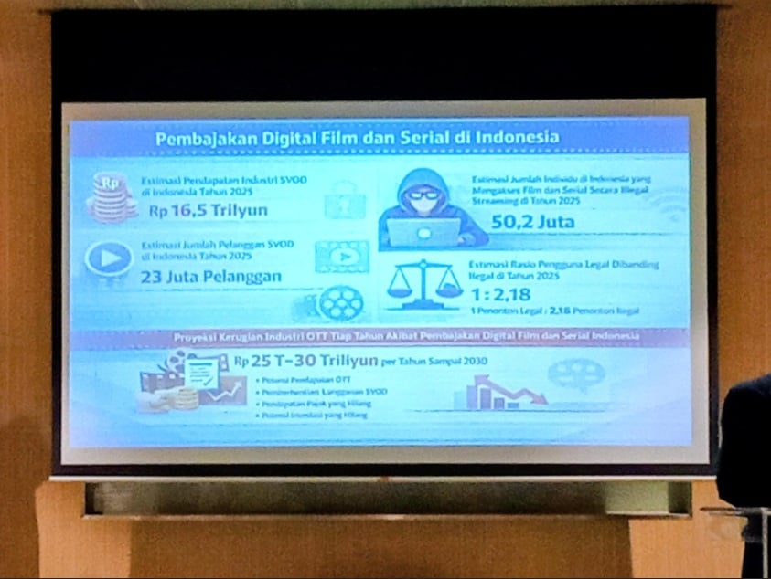Hal itu bakal mengakibatkan kerugian ekonomi tahunan Untuk industri Layar Lebar dan Tontonan Streaming lokal yang diproyeksikan mencapai Rp25–30 triliun Di tahun 2030 jika tidak ada intervensi signifikan.