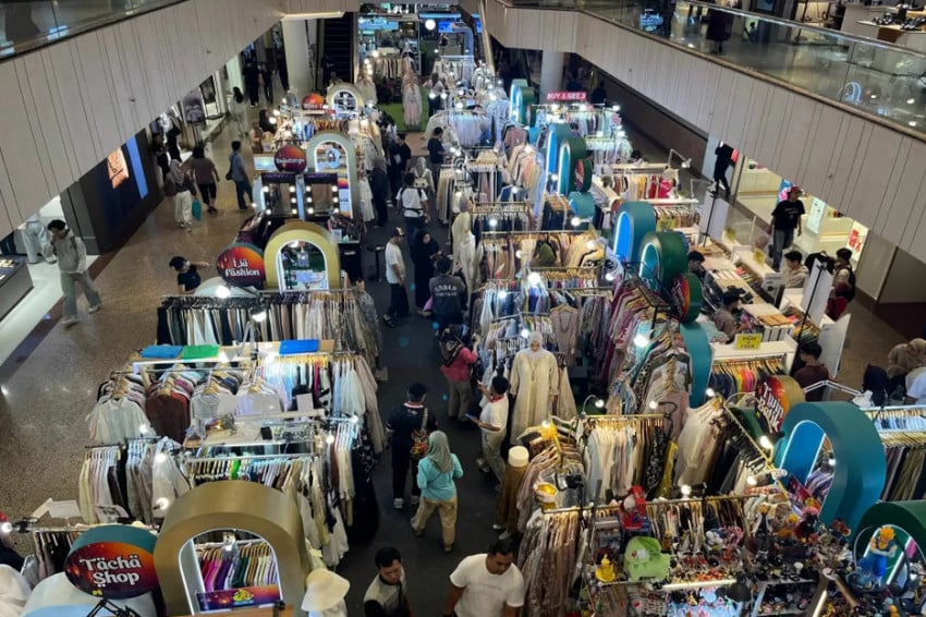 Sejumlah pengunjung memilih baju Hingga kawasan Blok M, Jakarta, Senin (16/2/2026). Menjelang Idulfitri, kawasan Blok M dipenuhi pengunjung Sebagai berburu baju Lebaran. Foto/SindoPhoto/Yudistiro Pranoto