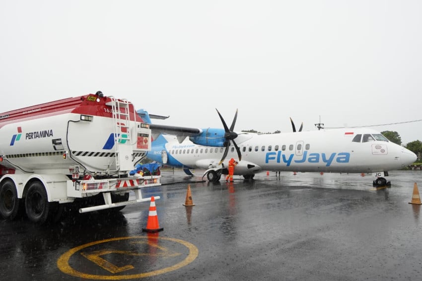 Pertamina Patra Niaga Di Kamis (15/1) merealisasikan pengisian avtur perdana Di Bandara Notohadinegoro, Jember, Jawa Timur. Foto/Dok