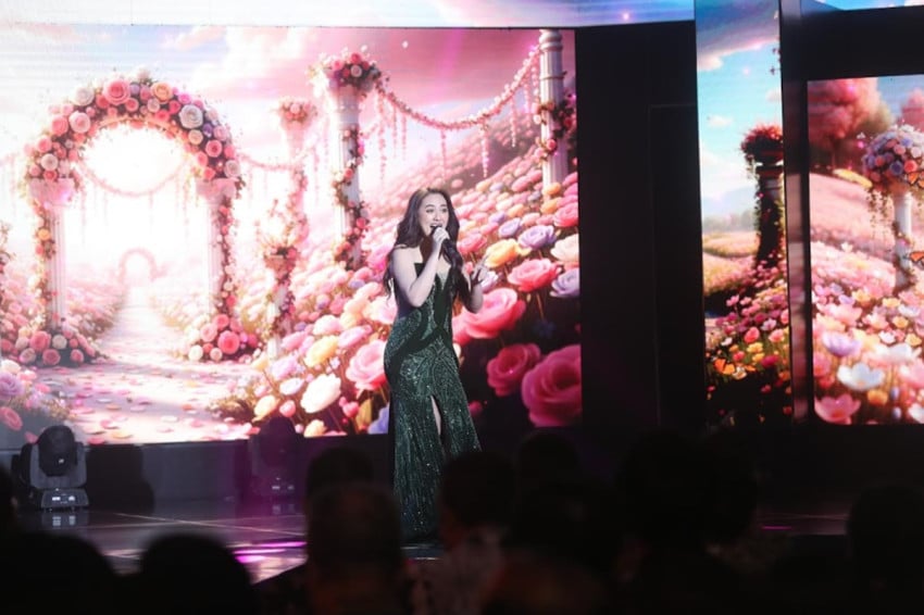 Vokalis Happy Asmara membuka Kegiatan Anugerah Penggerak Nusantara 2025 yang berlangsung Ke MNC Convention Hall, iNews Tower, Jakarta Di Kamis (20/11/2025) malam. Foto: IMG/Arif Julianto.