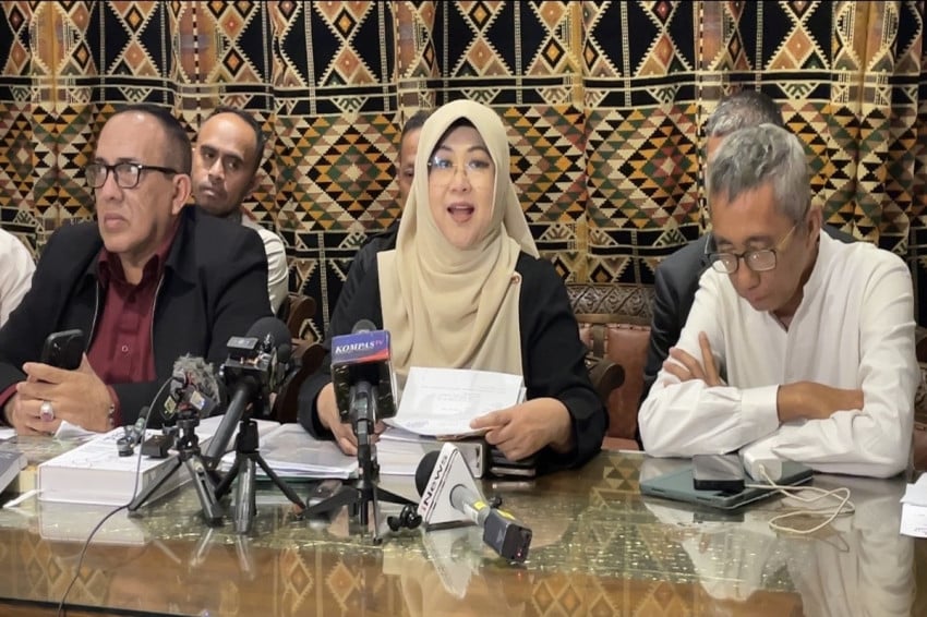 Praktisi Medis Tifa Melakukan konferensi pers Ke Tebet, Jakarta Selatan, Jumat (17/4/2026). Dia Akansegera terbang Di Yamaguchi University Jepang Untuk menelusuri keaslian gelar Rismon Hasiholan Sianipar. Foto: Niko Prayoga