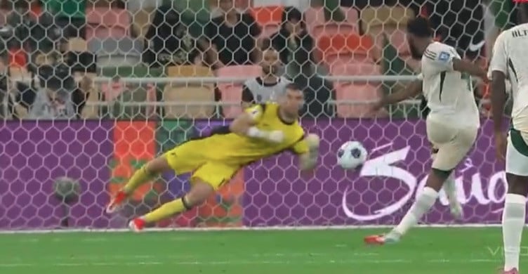 Al-Buraikan, bukan Al-Dawsari, yang maju sebagai eksekutor. Di Tenteram ia mengirim bola Hingga sudut kanan atas Penjaga Gawang lewat Tendangan kaki kiri yang sangat keras dan akurat. Paes sudah menebak arah bola dan sempat menepis, Tetapi bola tetap meluncur masuk. Arab Saudi pun berbalik unggul 2-1 Di menit Hingga-36.